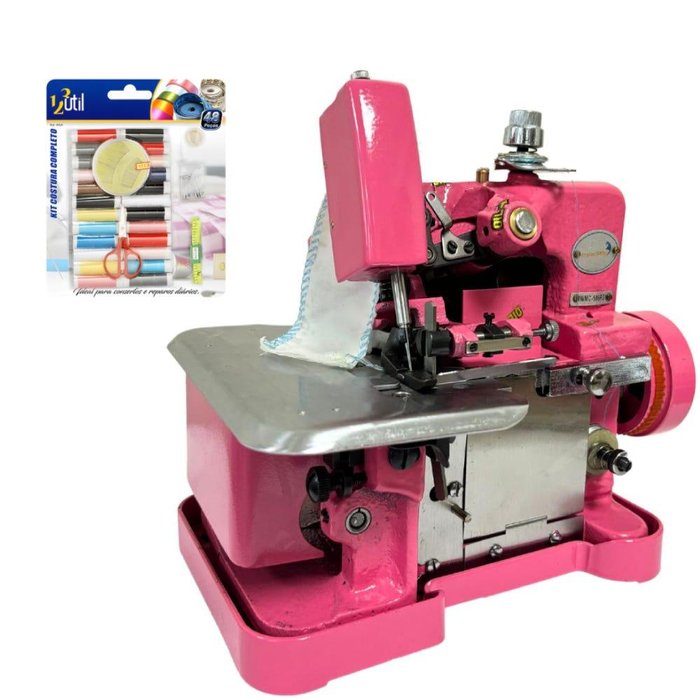 Máquina Costura 150w Rosa com Kit Costura Completo 220v Importway Rosa