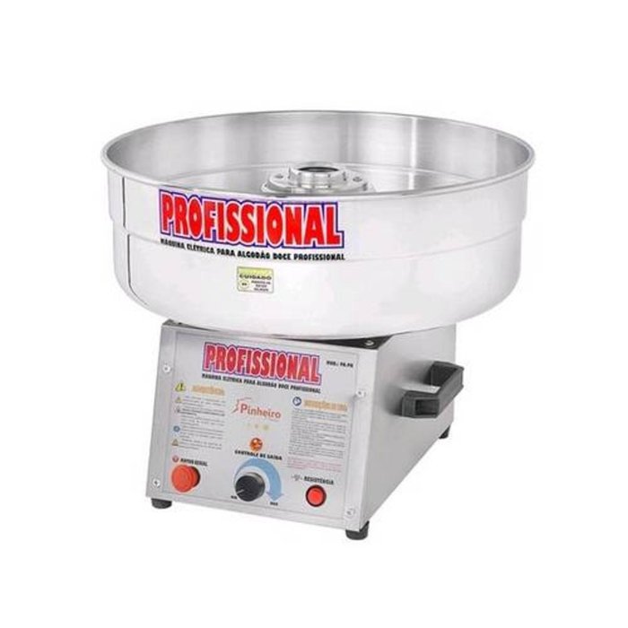 Máquina De Algodão Doce Profissional Pinheiro A Máquina Para Algodão Doce Profissional Pinheiro Tem Excelente Custo Benefício, Com Produção De 3 A 4 Algodões Por Minuto, Equipada Com Uma Turbina Com 130 Mm De Diâmetro E Bacia Coletora Com 50 Cm De Diâmetro Externo, Máquina No Tamanho Ideal Para Ser Facilmente Transportada. Possui Uma Alta Saída De Algodão Facilmente Controlado Com Dimmer Micro Processado. Agora Podendo Ser Utilizada Em Qualquer Tomada Com Tensões Entre 127-240 Volts Com Conversão Automática (Bivolt Automático). O Gabinete É Fabricado Em Aço Inox. Ideal Para Grandes Eventos, Tais Como Parques De Diversões, Rodeios, Festas, Etc.Máquina De Algodão Doce Profissional Pinheiro, A Sua Festa Completa!Dados TécnicosMedidas: 48 Cm De Diâmetro X 38 Cm De AlturaPeso Bruto: 10 KgProdução: 180 À 240 Algodões/Hora Voltagem: 127-220 Volts (Bivolt Automático)Motor: 127v: 120w / 3410 R.P.M - 220v: 240w / 3520 R.P.MPotência De Trabalho: 1.050 WattsPotência Máxima: 1.400 WattsGabinete: Aço Inox Escovado