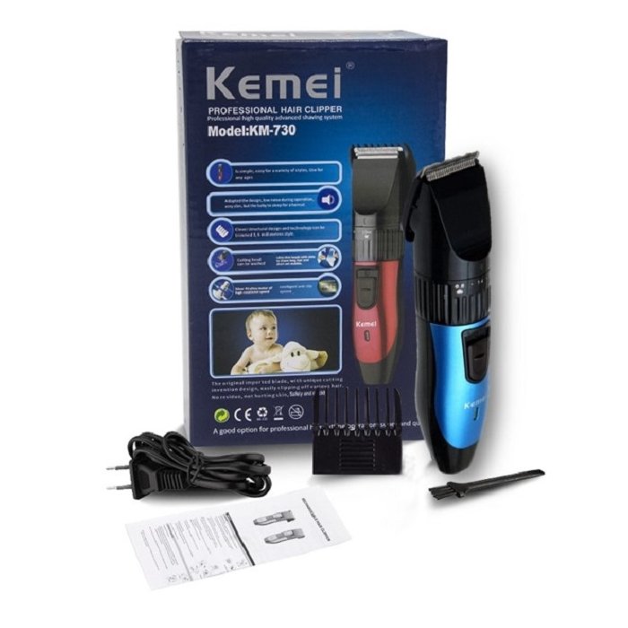 Máquina de Cortar Cabelo Barba Bigode Recarregável KM-730 Azul