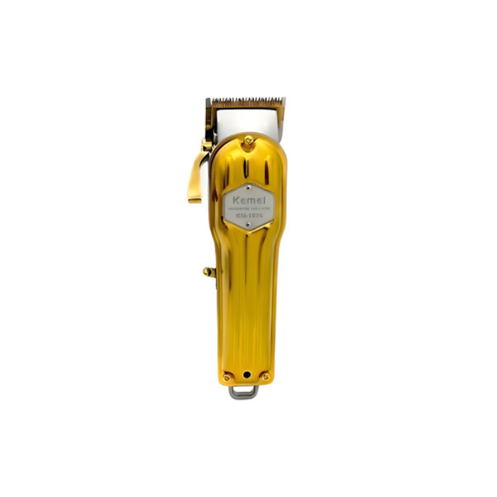 Corte cabelos, barba e bigode com precisão. A Kemei KM-1976 possui corpo metálico resistente, lâmina em aço inoxidável e motor potente. Pode ser usada com ou sem fio e acompanha 4 pentes para diferentes comprimentos de corte.