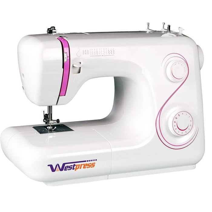 Máquina caseira, indicada para iniciantes na costura com pontos básicos, como costura reta e ziguezague, além de ser prática.