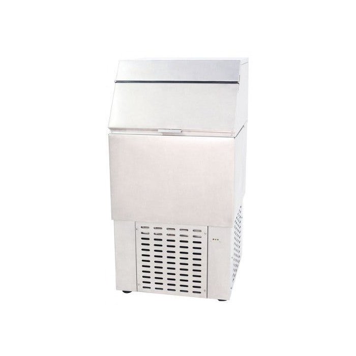 - Controle de temperatura através de termostato e mostrador digital; - Formação do gelo em cubos sólidos na "colmeia" do evaporador, através da circulação da água em efeito de cascata; - Reaproveitamento da água, gerando maior produtividade com economia, evitando o desperdício; - Cada ciclo fornece 112 cubos sólidos; - Revestimento externo em aço inox 304; - Porão-depósito em vacum-form com capacidade para até 25 kg; - Duas regulagens de profundidade do gelo, sendo a maior com 25mm e a menor de 24mm, aproximadamente; - Isolamento térmico em poliuretano injetado; - Pés emborrachados antiderrapantes com regulagem de altura; - Para uma excelente performance, a máquina deve ser instalada com um nivelamento perfeito e em um ambiente limpo e com temperatura controlada em torno de 25ºC, sendo que a temperatura da água, que entrará na máquina, não pode ultrapassar 22°C; - Somente monofásico em 220V; - Produz gelo sólido praticamente sem oxigênio, com quase 100% da relação gelo x água, fazendo com que o mesmo demore mais para derreter; - Acompanha filtro para água com 2 metros de mangueira; - A capacidade de produção da máquina, estará diretamente relacionada a temperatura ambiente, a temperatura da água e a qualidade do ambiente (ar livre de farinha, longe de fornos, totalmente protegido de intempéries, etc), onde as mesmas serão instaladas, além do correto nivelamento em relação ao piso.