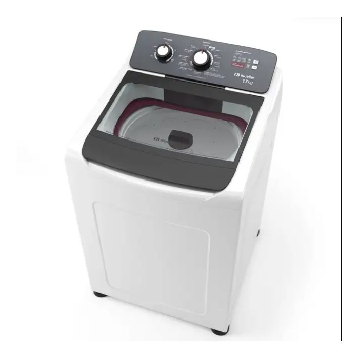 Com alta capacidade e robustez, combinando eficiência de lavagem e o poder da dupla centrifugação, a Lavadora Automática Mueller 17kg foi projetada para garantir durabilidade e praticidade. Uma verdadeira experiência de cuidado com as roupas. O modelo possui 11 programas de lavagem, com 5 níveis de água, além de funções como a Ultracentrifugação e programas de duplo enxágue para lavagem de edredom e cama/banho.