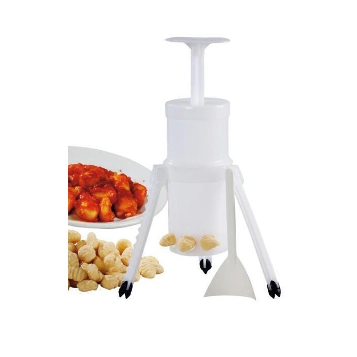 O jeito mais fácil de fazer nhoque, possui suporte para apoiar diretamente na panela. Para usar você deve apertar a manivela para baixo, a massa vai sair pelas aberturas, gire a manivela para fatiar no tamanho desejado.
