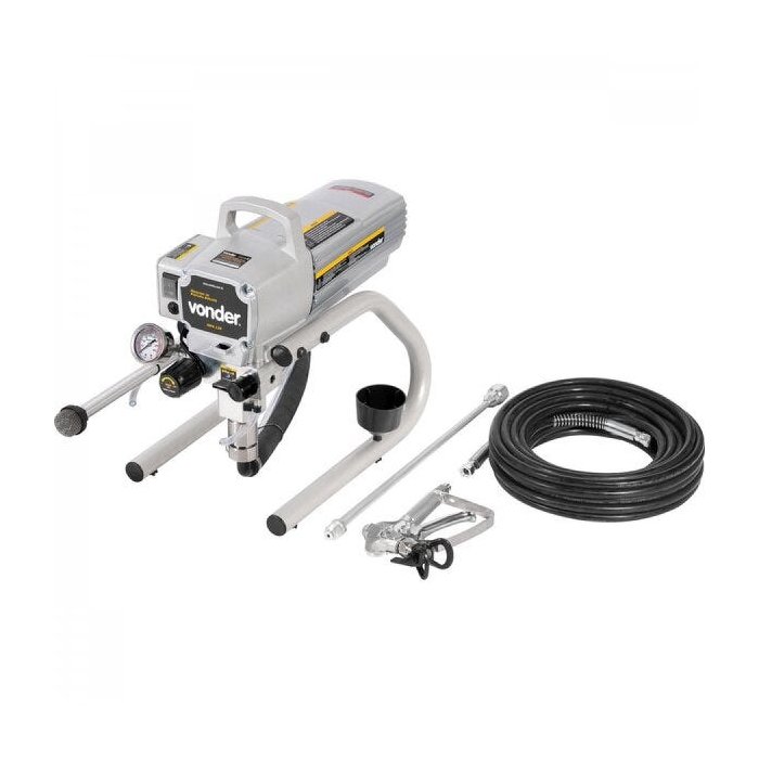 | Recomendações de Uso, Manutenção e Limpeza | Indicada para aplicações profissionais de tintas látex, PU (poliuretano), esmalte à base sintética, à base de água, resina acrílica (desde que não contenha catalizador) e tintas automotivas. Não indicada para tintas epóxi. Óleo indicado para lubrificação: óleo multiuso Vonder ou similar (lubrificar sempre antes do primeiro uso ou a cada 8 horas de trabalho, colocar aproximadamente 10 gotas no compartimento de entrada de óleo). |