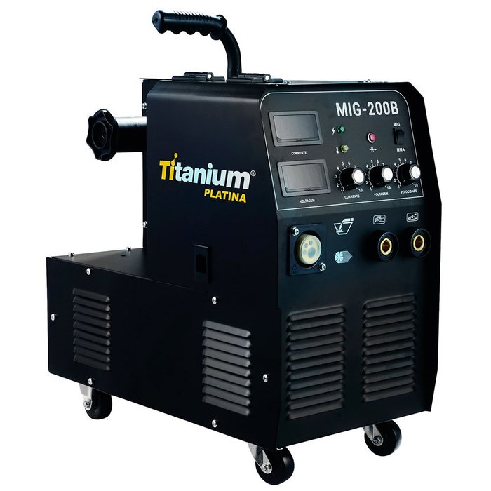 Maquina de solda 3 em 1 para soldas dos tipos MIG, TIG e MMA modelo 200ti 200A da Titanium, é uma maquina leve e compacta, com alimentação monofásica(220V) e possui encaixe da tocha tipo euroconector.