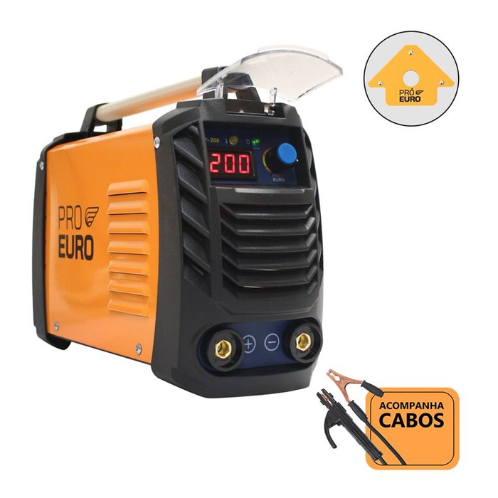 Maquina de solda inversora gp 200a bivolt pro euro + 1 esquadro magnetico 12kg