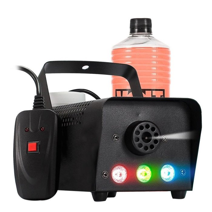 Máquina de fumaça que não pode faltar em suas festas, possui 3 LEDs nas cores RGB (Vermelho, Verde e Azul), dando ótimos efeitos visuais coloridos, ideal para festas, baladas, eventos, casas noturnas, shows, exposições, buffets e onde desejar usar. Máquina com ótimo fluxo de fumaça! A máquina de fumaça possui dois efeitos, solta fumaça e acende 3 LEDs RGB frontais simultaneamente. São acionados automaticamente junto com a fumaça, 2 efeitos em um único aparelho, tudo fácil de instalar e operar além de possuir grande potência de 600W, com um super compressor turbinado. Iluminação e fumaça em um único produto. Especificações: Potência de 600 WATTS. Reservatório com 300 ml Aquecimento inicial de 4 a 5 minutos. Tempo de jato contínuo de 12-15 segundos. Distância do jato de fumaça 2 a 5m. Dimensões de 11 x 12 x 24cm. Peso do produto 1,9Kg. Voltagem: 110v. Controle com fio: tamanho do cabo 2,9m . Itens inclusos: 1 Máquina de fumaça 1 Controle com fio 1 Suporte para pendurar 2 Parafusos Borboletas 1 Litro de Liquido para fumaça Obs: 3 meses de garantia contra defeito de fabricação Imagens Meramente Ilustrativas 2000