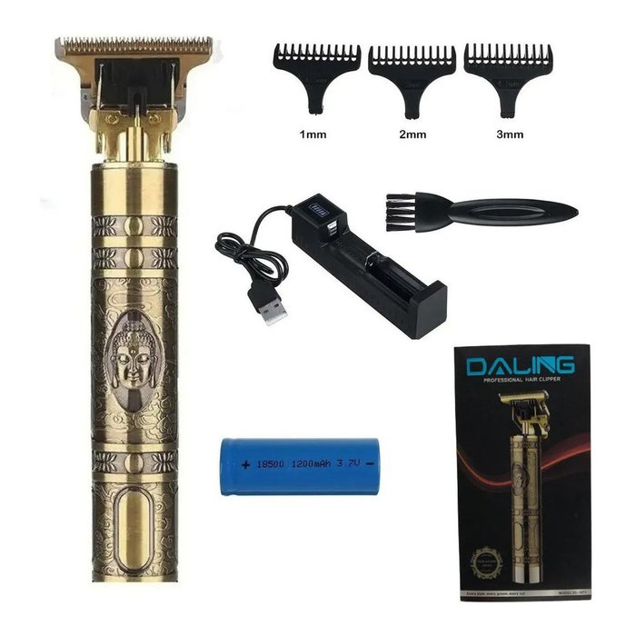 Olá!Sejam bem vindos à nossa loja;Nossa empresa trabalha com produtos de QUALIDADE e a PRONTA ENTREGA;- Embalagem ADEQUADA e devidos CUIDADOS;- POSTAGEM em até 24 HORAS após confirmação de pagamento e código para RASTREAMENTO;- GARANTIA e seriedade no ATENDIMENTO pós-venda!*Leia todo o anúncio antes da compra e verifique se os seus dados estão corretos, inclusive o endereço._____________________________________________________________Esta Maquina além de possuir um designer único, traz em sua lâmina um formato T, que facilita na hora de fazer marcações e acabamentos, contando também com uma visão limpa das lâminas permitindo mais precisão e agilidade.Perfeita para o seu dia a dia e para Profissionais de Barbearia trazendo mais produtividade e estilo. Fácil de limpar, resistente a água e com um motor potente chegando a 7.000 rotações por minuto.Pode ser usada para:- Aparar a barba;- Cortar o cabelo;- Fazer o pezinho e marcações;- Acabamentos e disfarces;- Desenhos;- Depilar o peitoral, axilas, costas e pernas.Descrição:* Modelos Buda e Dragão- Sem fio, mais mobilidade pra você;- 3W de potência, baixo ruído, motor mais silencioso;- Bateria de 1200mAh com duração de 120min ininterruptos, com 3hs de carga;- Compacta, leve e ergonômica;- Portátil, Leve em suas viagens;- Corpo em Metal, com acabamento vintage em alto relevo;- Troca rápida de pentes;- Carregue em qualquer entrada USB (Power Bank, computadores e etc.);- Bivolt 110/220vITENS INCLUSO:3-PENTES de 1mm, 2mm e 3mm1- ESCOVINHA LIMPADOR1- ÓLEO PARA LUBRIFICAÇÃO DA LÂMINA1 BATERIA RECARREGÁVEL REMOVÍVEL1 CARREGADOR USB1- MAQUINA PROFISSIONAL DL-1073