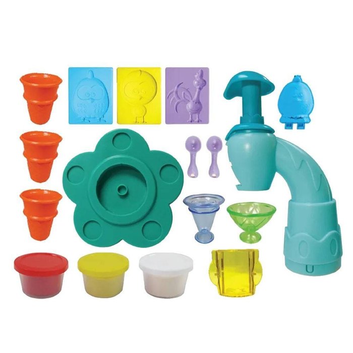 | Conteúdo da Embalagem | 3 Potes de 50 g, 1 molde da galinha, 3 moldes de personagens, 1 maquininha de sorvete, base, mais 8 acessórios. |