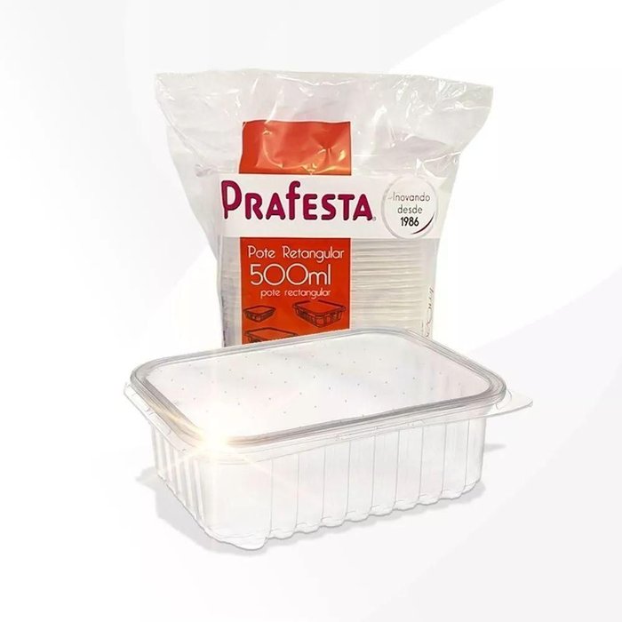 Bem-vindo à MOGIANA EMBALAGENS E DESCARTAVEIS, somos referência em produtos descartáveis na cidade de Franca! E agora estamos presentes no online para melhor atendê-los. Somos uma empresa comprometida em simplificar a sua vida e tornar o seu dia a dia mais prático e conveniente. DESCRIÇÃO DO PRODUTO: A Marmita Fitness Descartável de 500ml Prafesta é uma opção conveniente e prática para quem busca uma alimentação saudável e organizada. Com um pacote contendo 24 unidades, ela é perfeita para o planejamento de refeições semanais ou mensais. Fabricada com materiais de alta qualidade e totalmente seguros para uso alimentar, essa marmita é projetada para ser utilizada tanto no freezer quanto no microondas, proporcionando versatilidade e facilitando o processo de preparo e armazenamento de alimentos. Seu design compacto e hermético ajuda a manter a frescura dos alimentos, preservando sabores e nutrientes. CARACTERISTICAS PRINCIPAIS: Tamanho Ideal: Com capacidade de 500ml, e 24 unidades este pote é perfeito para acomodar porções individuais de alimentos, garantindo que você tenha sempre o suficiente para uma refeição completa. Uso misto: Pode ser usado no freezer e ou no micro-ondas. Material Durável: Fabricado em plástico resistente, o pote é durável o suficiente para uso único, mas também pode ser reutilizado, se desejar. Tampa Hermética: A tampa encaixa firmemente no pote, criando uma vedação hermética. FICHA TÉCNICA: Capacidade: 500ml Contém: 24 Unidades - (Contém uma tampa por marmita) Utilização: Frezeer e Microondas Marca: Prafesta Dimensões: Interno - 128,0mm X 83,5mm X 45,7mm Externo - 164,2mm X 120,3mm X 52,1mm Matéria Prima: Polipropileno Cristal Virgem (PP); Temperatura máxima para uso contínuo: 90 °C; Temperatura mínima para uso contínuo: -5 °C; Amorf, Atóxico, Reciclável. CONTEM 1 TAMPA POR MARMITA - SEM BPA – PRODUTO NÃO TOXICO OBS: FOTOS REAIS DO PRODUTO. SEU PEDIDO SERÁ ENVIADO EM ATÉ APÓS APROVAÇÃO DA COMPRA.