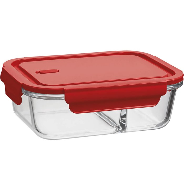Marmita Hermética com Divisória 1l Pote de Vidro Borossilicato Tampa Vermelha Retangular Uz Vermelho