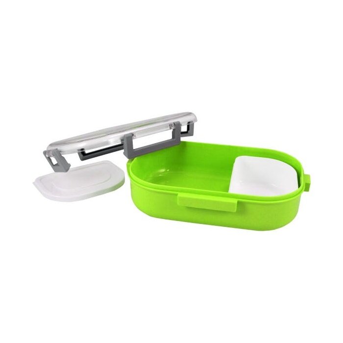 A marmita de 920 ml possui um pote interno para armazenar molhos, prático e simples. Feito de material polipropileno, é resistente e possui tampa com travas para segurança evitando acidentes.