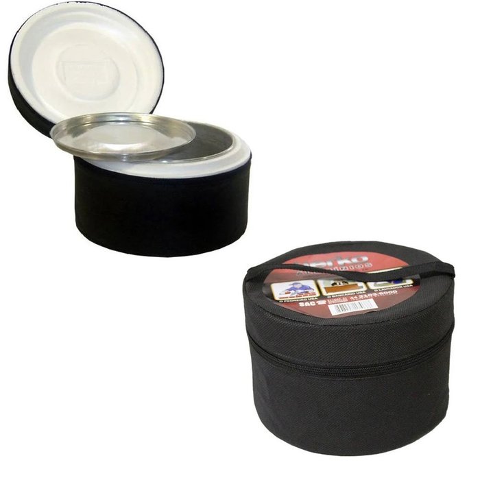 Marmita Térmica Redonda Pequena é produzida em alumínio polido, possuí um compartimento em isopor mantendo a temperatura do alimento aquecida por muito mais tempo, contém também uma capa removível com ziper e alça, facilitando o manuseio com mais praticidade e facilidade em seu dia a dia.
