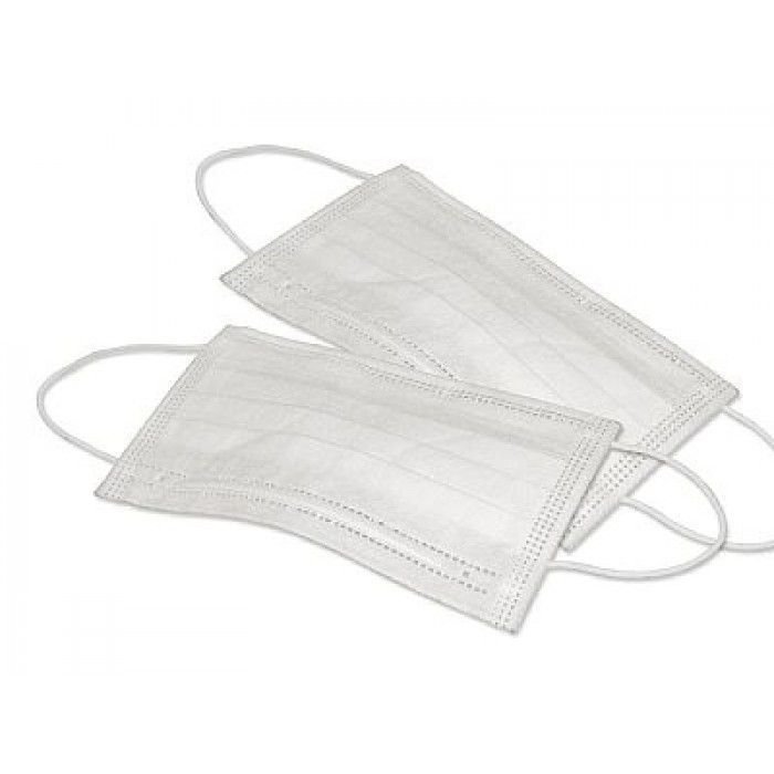 Máscaras descartáveis fabricadas em não-tecido de estrutura plana, flexível e porosa, composta por grânulos de resina de polipropileno (TNT), unidos por processo térmico. Clipe para ajuste nasal em metal galvanizado e revestido com plástico. Possui duas camadas externas de não-tecido 100% polipropileno e uma camada de filtro de retenção bacteriana e elástico para ajuste.