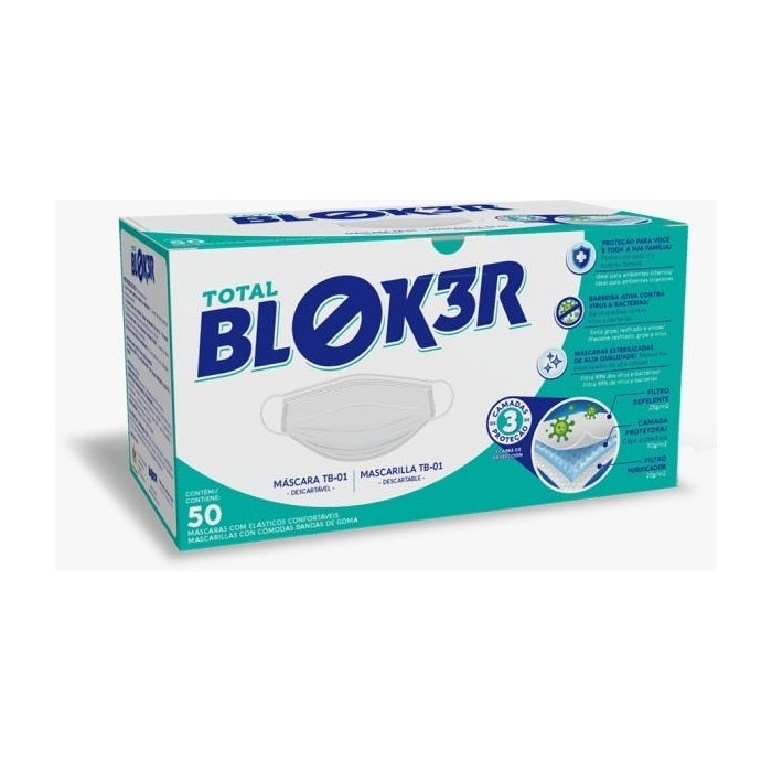 Mascara Cirurgica Tripla Descartavel Tnt com Elastico e Clip Nasal 50 Unidades - Total Bloker