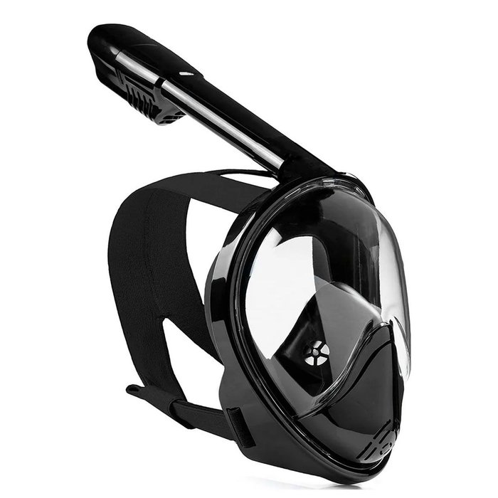 Mascara de Mergulho Full Face Snorkel Nataçao Anti Embaçamento Lazer Diversao Suporte Camera Piscina Preto
