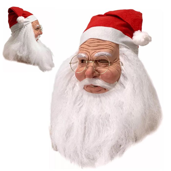 Mascara de Papai Noel Realista Natal Natalino Latex Fantasia Barba Oculos Gorro Festa Fim de Ano Con Branco