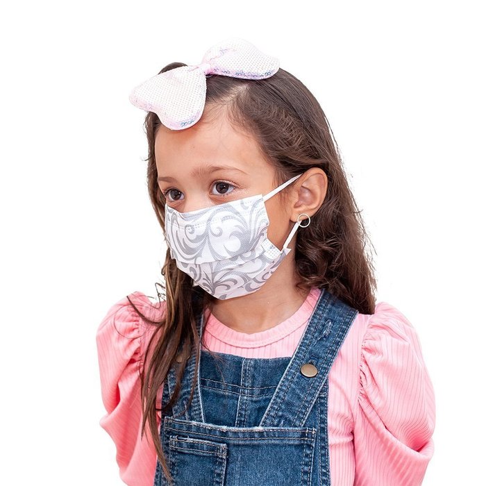Mascara Descartavel Cirurgica Tripla Estampada Prata Kids Pct 100 Und