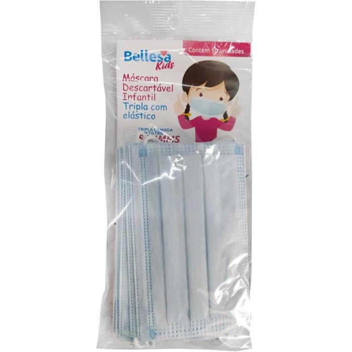 Máscara Descartável Infantil AZUL Tripla TNT C/CL com 10 Unidades
