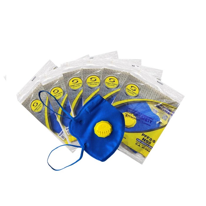 Mascara Pff2 C/ Valvula Proteção Respiratória Azul 75 Peças Elastico De Cabeça