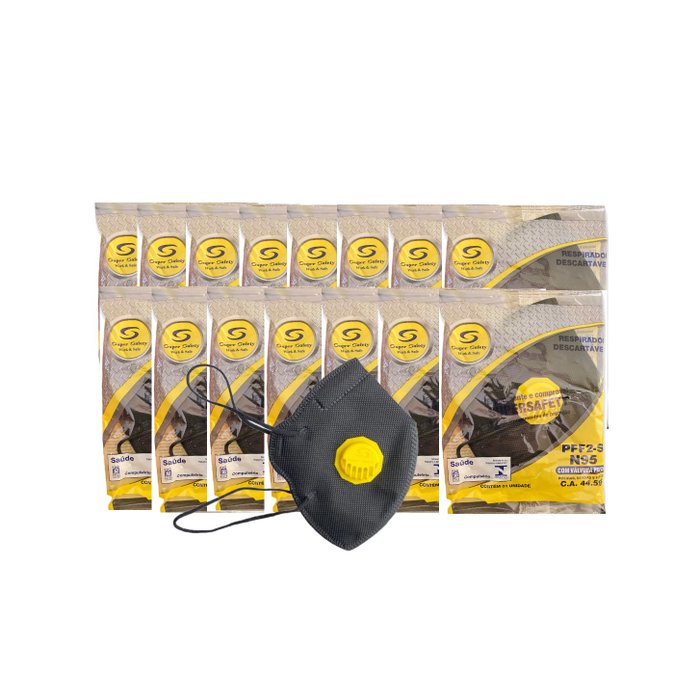 Mascara Pff2 C/ Valvula Proteção Respiratória Preta 300 Peças Elastico De Cabeça