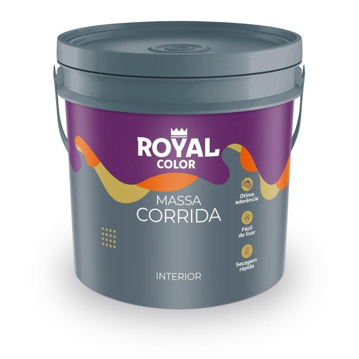 Características Principais:Cor Branca: A cor branca da massa corrida PVA serve como uma base neutra, facilitando a cobertura com tintas de diversas tonalidades.Embalagem de 5KG: A embalagem de 5 quilogramas é adequada para projetos de pequeno a médio porte, oferecendo praticidade e facilidade de manuseio.Nivelamento e Correção de Imperfeições: A massa corrida é projetada para nivelar e corrigir pequenas fissuras, rachaduras, buracos e irregularidades em superfícies como paredes e tetos.Aplicação em Diversas Superfícies: Pode ser aplicada em superfícies de alvenaria, gesso, reboco e drywall, preparando-as para a aplicação de tintas ou outros revestimentos.Tinta à Base de Água (PVA): Sendo à base de água, a massa corrida PVA é fácil de aplicar, tem um odor mais suave e seca mais rapidamente. É compatível com tintas à base de água.Marca Royal Color: A Royal Color é conhecida por oferecer produtos de qualidade no segmento de tintas e revestimentos, sendo uma escolha confiável.Instruções de Aplicação:Aplique a massa corrida PVA utilizando uma espátula ou desempenadeira, preenchendo e nivelando as imperfeições da superfície.Certifique-se de que a área a ser tratada esteja limpa, seca e livre de poeira.Aguarde o tempo de secagem recomendado antes de lixar e aplicar a tinta de acabamento.