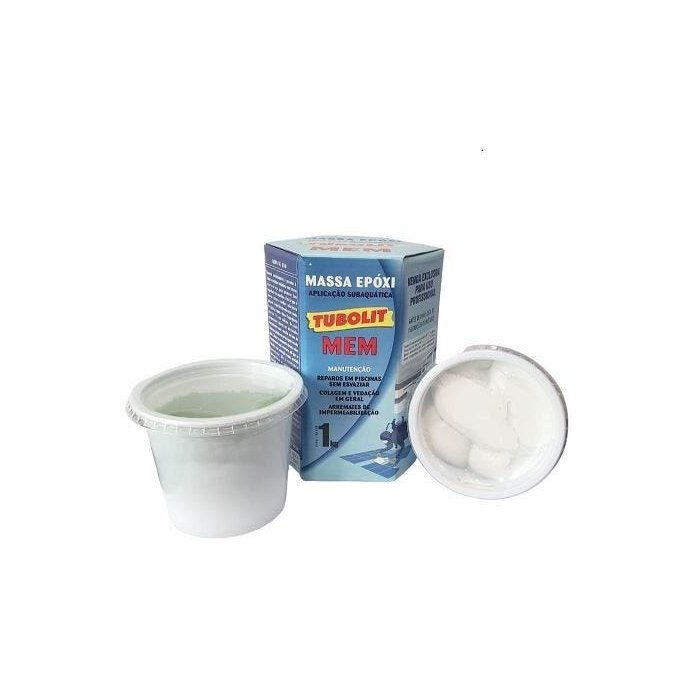 Massa epoxi MEM bi componente para aplicação subaquática: Reparos em piscinas sem esvaziar, colagem e vedação em geral, arremates de impermeabilização. Não é necessário homogeneizar os componentes em separado, penetra na umidade aderindo ao substrato, resistente a corrosão, resistente a abrasão, não escorre na vertical, resistência mecânica, isolante elétrico e impermeável. Para limpeza das mãos e ferramentas; usar água ou álcool.