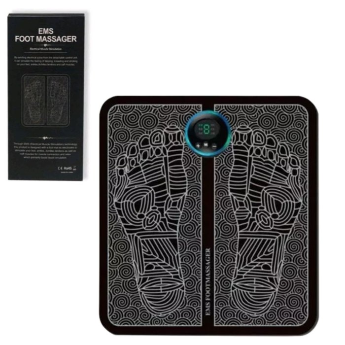 Massageador Elétrico Para os Pés MA-860Envia impulsos elétricos que simulam a sensação de massagear, amassar e acariciar seus pés, tornozelos, tendões e músculos da panturrilha.8 tipos de massagem e 19 níveis de intensidade.15 minutos de execução automática.Tapete dobrável que cabe em qualquer lugar.Reduz o inchaços, alivia as dores nos pés, joelhos e lombar, eliminar as inflamações causadas por calçados inadequados, alivia as tensões da artrite, esporão e tendinite, reduz as varizes e celulite, alivia as dores na coluna, previne lesões musculares, e muito mais.Tamanho do tapete: 28,5 x 27,5 cm