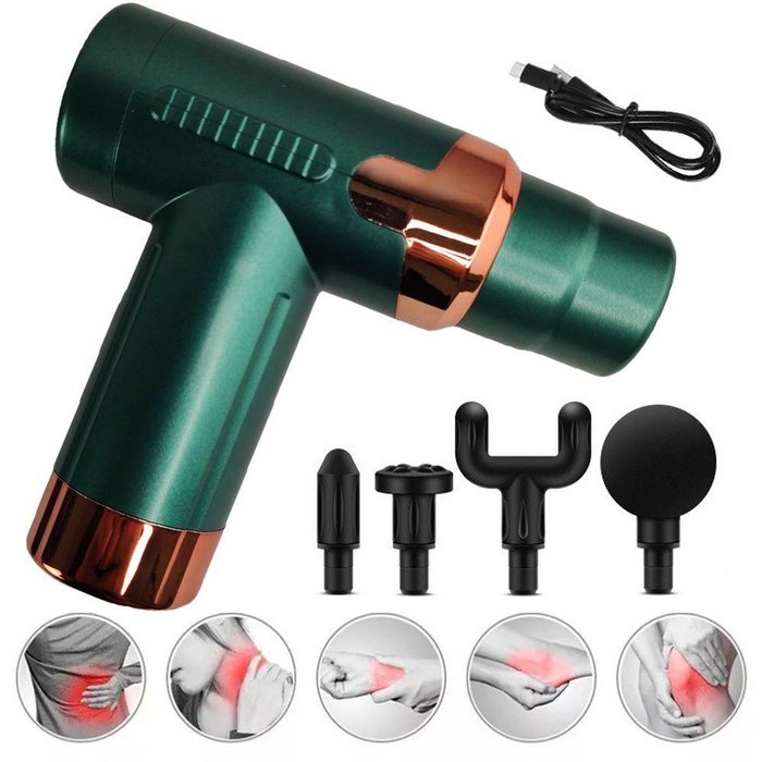 Massageador Portatil 6 Modos 4 Pontas Massagem Relaxante Anti Estresse Alivia Dores Corpo Tensao Verde