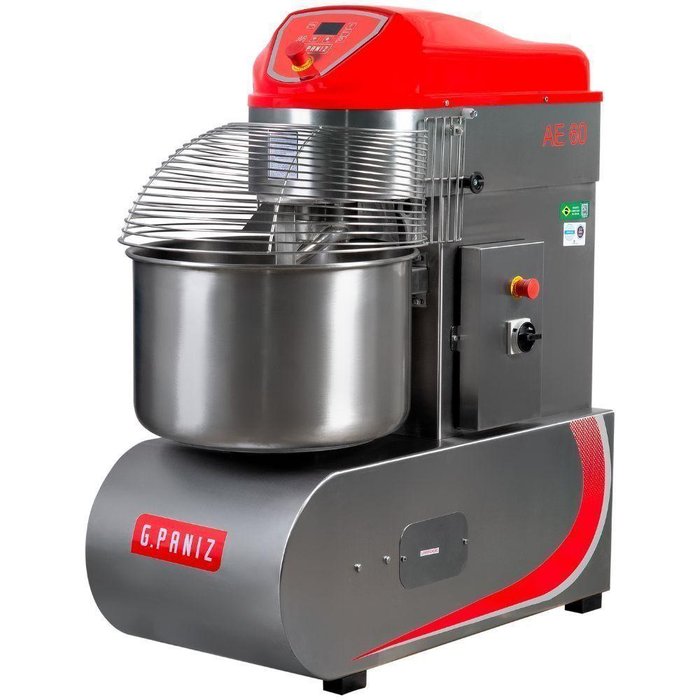 Amasseira Espiral 60kg 2 Velocidades AE60G2 G.Paniz. Ideal para a produção dos mais variados tipos de massas pesadas de panificação, como pães básicos, como pães (francês, baguette, sírio, italiano, caseiro, de forma, integral, hamburguer e artesanal), panetones, donuts, brioches, croissants, empadas e pizzas. Estrutura robusta em aço inox 430. Painel digital com teclas de liga/desliga/reset, controle de velocidades manual/automática com temporizador e display indicativo. Cuba giratória em aço inox 304. Batedor espiral em ferro fundido. CAPACIDADE: 60Kg de massa pronta. CAPACIDADE DE FARINHA: 36Kg. POTÊNCIA: 2,5/4,0CV. CONSUMO TRIFÁSICO: 2,05/2,40kWh. QUANTIDADE DE VELOCIDADE: 2. PESO: 263kg. DIMENSÕES(CxAxL): 60x131,3x116cm. Equipamento certificado pelo OCP 0070 conforme Portaria Inmetro - 148/2022. Amasseira Espiral 60kg 2 Velocidades AE60G2 G.Paniz é na Atau.