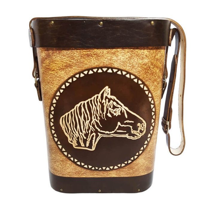 Mateira Para Chimarrão Em Couro Com Alça Para Carregar 1l Cavalo