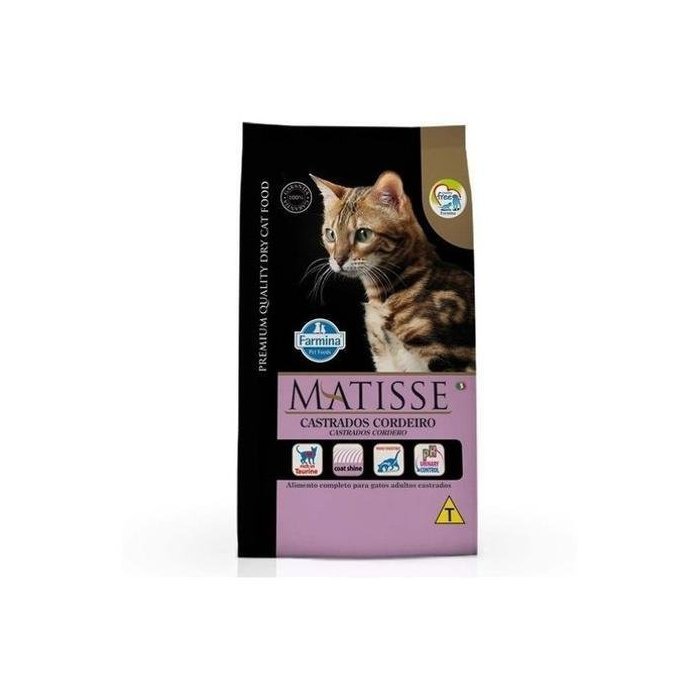 __________ração premium indicada para gatos adultos castrados. __- melhora o brilho da pelagem. __- alta digestibilidade, rica em taurina. __- controla o ph urinário. __- 100% satisfação garantida farmina pet food. Caso o seu gato não se adapte a __farmina devolve o valor pago (ver no verso da ração as __condições Especificações IndicaçãoGatos RaçaRaças grandes, raças médias, raças pequenas IdadeAdultos LinhaMatisse Tipo de raçãoPremium SaborCordeiro CastradoCastrado CoranteSem corante TransgênicoCom transgênico Tamanho do grãoGrão pequeno ComposiçãoFarinha de vísceras de aves, quirera de arroz, milho, glúten de milho-60, casca de ervilha, celulose, farinha de peixe, óleo de frango, polpa de beterraba, óleo de peixe, ovo desidratado, levedura seca de cervejaria, dl-metionina, taurina, l-carnitina, hidrolisado de fígado de frango e suíno, vitaminas (a, d3, e, b1, b2, b6, b12, c, biotina, niacina, ácido pantotênico, ácido fólico, cloreto de colina), cloreto de sódio, cloreto de potássio, ácido fosfórico, sulfato ferroso, sulfato de cobre, sulfato de zinco, sulfato de manganês, selenito de sódio, iodato de cálcio, sulfato de cobalto, propionato de cálcio, bha, bht. Ingredientes transgênicos. Espécies doadoras do gene: bacillus thuringiensis; streptomyces viridochromogenes; agrobacterium tumefaciens; zea mays. Níveis de garantia Umidade (máx.)80 g/kg 8% Proteína bruta (mín.)360 g/kg 36% Extrato etéreo (mín.)100 g/kg 10% Matéria fibrosa (máx.)55 g/kg 5,5% Matéria mineral (máx.)80 g/kg 8% Cálcio (mín.)8.500 mg/kg 0,8% Cálcio (máx.)17,5 g/kg 1,75% Fósforo (mín.)8.000 mg/kg 0,8% Sódio (mín.)3.000 mg/kg Potássio (mín.)5.700 mg/kg Taurina (mín.)1.500 mg/kg L-carnitina (mín.)200 mg/kg Metionina (mín.) 3.000 mg/kg Ômega 3 (mín.)1.500 mg/kg Ômega 6 (mín.)12 g/kg E. Metabolizável (mín.)3.480 kcal/kg Enriquecimento por kg Vitamina a11.000 ui Vitamina d3730 ui Vitamina e250 ui Vitamina k30,7 mg Vitamina b14,5 mg Vitamina b29 mg Vitamina b63,5 mg Vitamina b1242 mcg Vitamina c120 mg Biotina0,6 mg Niacina65 mg Ácido pantotênico25 mg Ácido fólico0,7 mg Colina1.200 mg Ferro40 mg Cobre10 mg Zinco 70 mg Manganês20 mg Selênio0,1 mg Iodo1,5 mg Cobalto0,25 mg Quantidade recomendada Peso do gato kg1kg3kg5kg7kg10kg Ideal30g60g85g105g135g Sobrepeso 65g85g105g