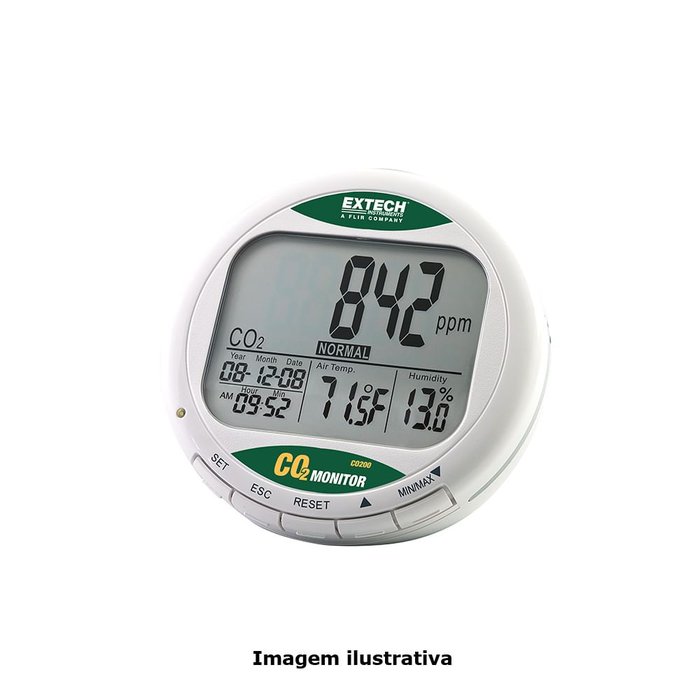 Medidor de Co2 Capacidade 0 a 9.999 Ppm Instrumento de Mesa Para Medição de Qualidade do Ar Uso Interno Extech Co200