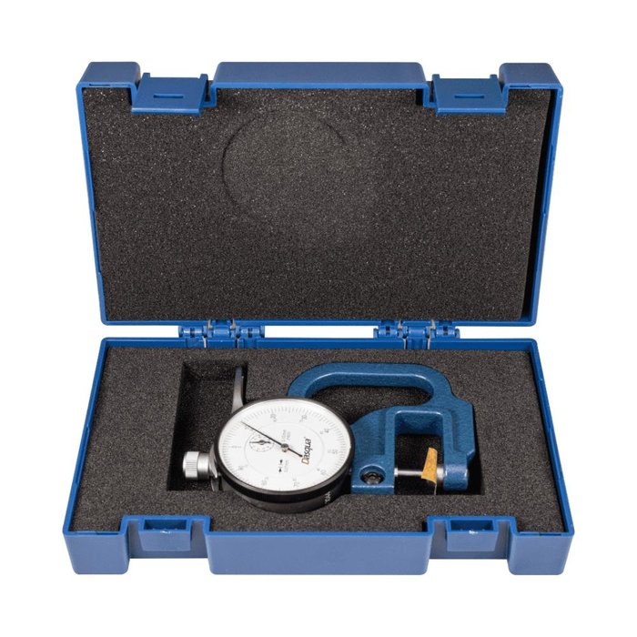Medidor de espessura - DASQUA O QUE É O MEDIDOR DE ESPESSURAO medidor de espessura na usinagem é um instrumento de medição utilizado para determinar a espessura de materiais, como metal, plástico, papel e outros, de forma precisa e eficiente. Ele é projetado com uma sonda ou sensor que é aplicado sobre a superfície do material a ser medido. A partir disso, o dispositivo realiza uma leitura da espessura do material e exibe o valor correspondente em uma unidade de medida específica, como milímetros ou polegadas, em seu relógio. Este equipamento é fundamental na usinagem para verificar a conformidade das peças produzidas com as especificações dimensionais do projeto, garantindo a qualidade e precisão dos componentes fabricados. COMO UTILIZAR O MEDIDOR DE ESPESSURAPara utilizar o medidor de espessura na usinagem, posicione a sonda perpendicularmente à superfície do material a ser medido e pressione suavemente para garantir o contato completo. Leia o valor da espessura mostrado no relógio do instrumento. Registre a medição e repita o processo em diferentes pontos da peça para verificar a uniformidade da espessura. Ao finalizar, limpe a sonda e o display e armazene o medidor adequadamente. Esse procedimento rápido e preciso permite verificar a espessura dos materiais usados na usinagem, garantindo a conformidade com as especificações do projeto e a qualidade das peças produzidas. DESCRIÇÃO DO MEDIDOR DE ESPESSURA- Faces de medição em aço temperado, retificado e lapidado;- Pontas de contato planas.- Estrutura metálica leve e envernizada, laqueada, com alavanca de elevação do eixo. ESPECIFICAÇÕES DO MEDIDOR DE ESPESSURA- Descrição: 0-100mm- Resolução: 0,01mm- Marca: DASQUA;- Código:419.0001 Distribuidor Autorizado para todo o Brasil. O Grupo Piveta Ferramentas é uma empresa com mais de 30 anos no mercado e líder no segmento de Máquinas e Ferramentas para Usinagem, contamos com mais de 25 Mil produtos para melhor lhe atender.Temos como compromisso um atendimento e excelência na prestação de serviços.. Não perca tempo procurando, a ferramenta certa para você está aqui.É importante ressaltar também que nossa atuação não se limita ao setor de Usinagem Mecânica, nossa variedade de produtos nos permite atender a vários setores como Agronegócio, Embalagem Plástica, Retifica de Motores, Usinas de Açúcar e Álcool, Manutenção Industrial (Usinagem e Caldeiraria), Mineração, Área de Fertilizantes, Frigoríficos, Usinagem Médio para Grande Porte e Automação Industrial. Desta forma fortificando e ajudando no desenvolvimento econômico do nosso país.