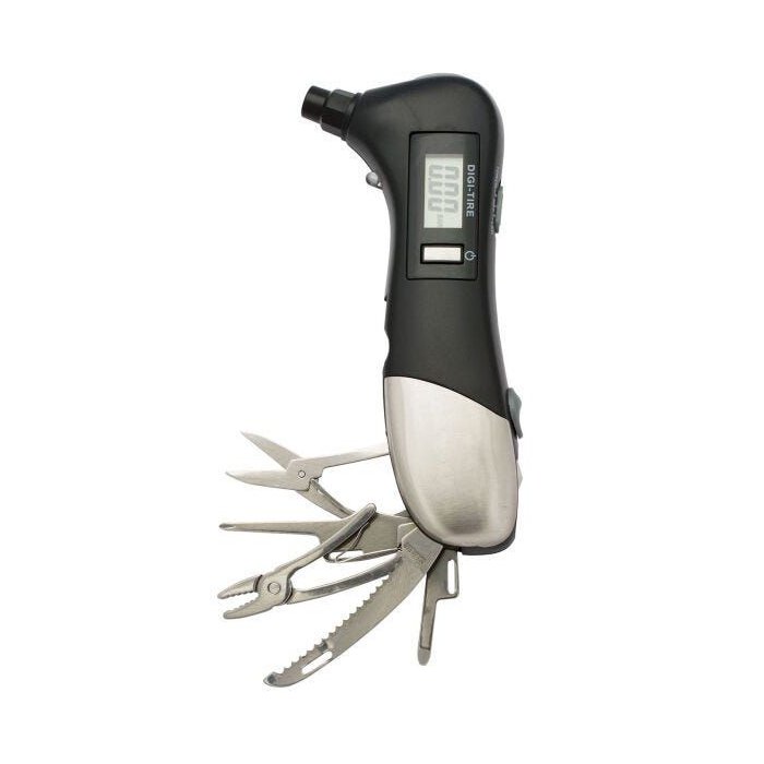 Medidor Digital de Pressão Portátil para Pneus com Lanterna e Multi-ferramentas