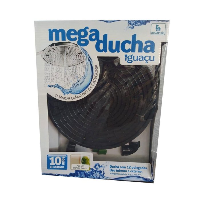 A Mega Ducha de parede Aquaplás é produzida em resina automotiva, e contém o maior diâmetro da categoria. Feito tanto para uso interno e externo