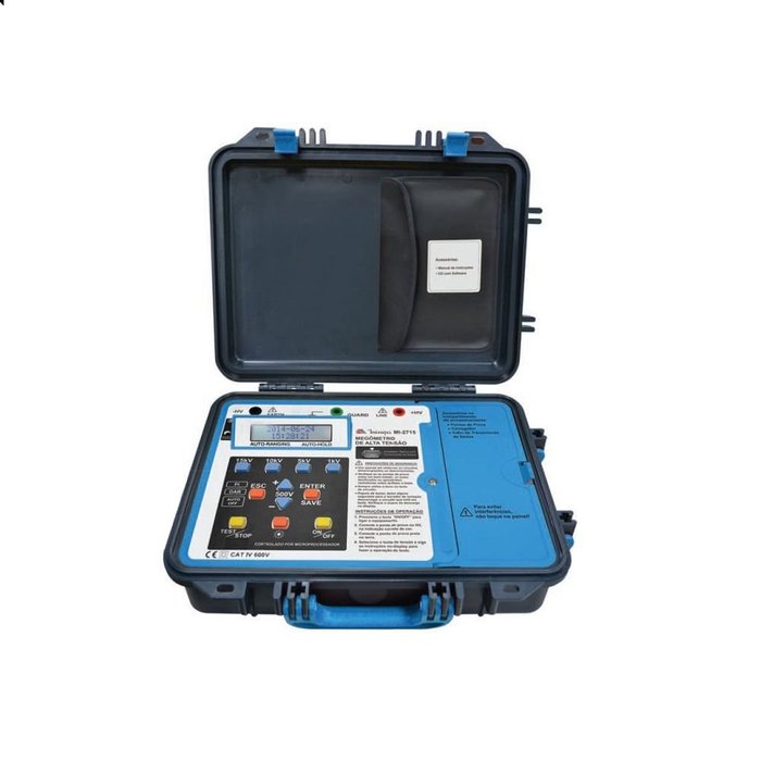 Instrumento portátil para medidas de isola até 2TO com aplicação de tensões de t até 15.000 V a partir de 1000 V. Aplicado para testes de resistência de isolação em cabos, motores, geradores, transformadores, isoladores chaves de alta pressão, cabeamento de instalações, etc....