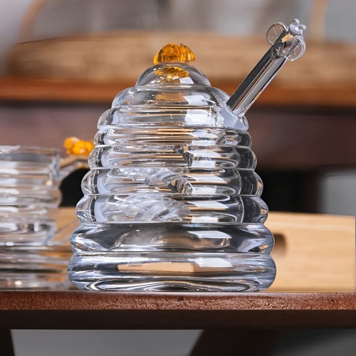 A abertura ampla facilita o acesso ao mel, enquanto o tamanho compacto permite que você armazene facilmente em qualquer prateleira ou mesa.
