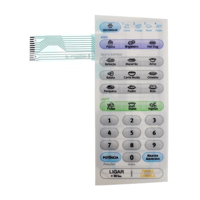 A Membrana Eletrônica é responsável por proteger a Placa Controle contra umidade e de receber os comandos do usuário para seleção das funções do Micro-Ondas.