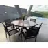 "Eleve o nível de elegância e conforto ao ar livre com este conjunto de mesa e cadeiras. A mesa de 1,50m apresenta uma estrutura em alumínio resistente com um centro giratório, permitindo que todos ao redor da mesa compartilhem conversas e refeições de maneira conveniente. Com um design moderno e sofisticado, este conjunto é perfeito para desfrutar de momentos especiais em seu jardim, varanda ou área de lazer.