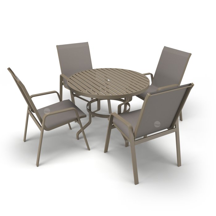 Mesa 4 Cadeiras Ripado Piscina Alumínio Fendi e Tela Fendi