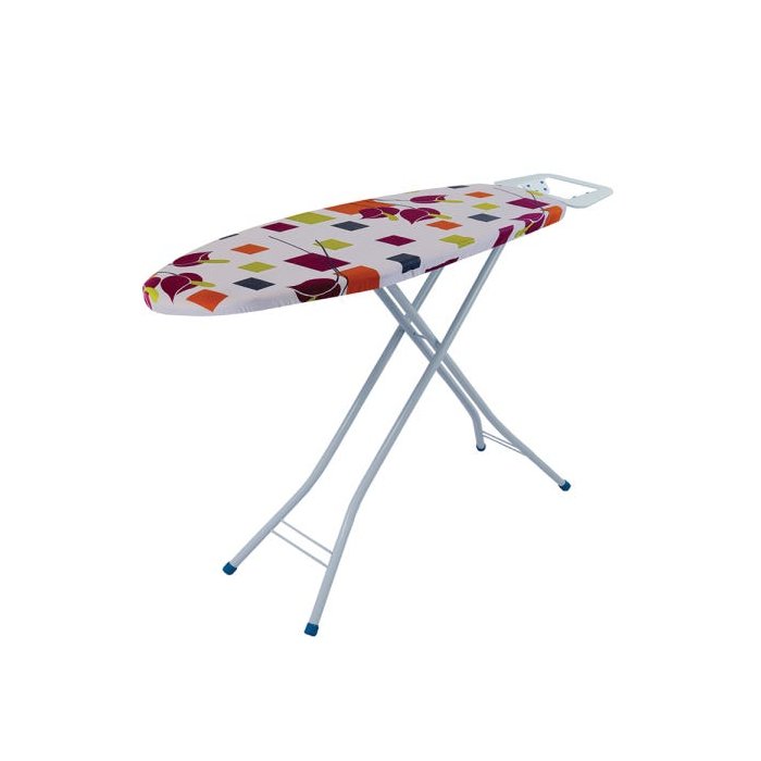 Possui tampo de madeira, sua abertura e fechamento é manual com 3 regulagens de altura, atinge as medidas de Altura máx 92cm e min 81cm. Porta ferro em chapa de aço ele é inclinado ergonomicamente para facilitar o descanso do ferro e possui apoio em silicone para proteger seu ferro de arranhões. Seus pés são feitos em tubo e arame de aço com pintura eletrostática a pó, garante maior resistência e durabilidade com maior facilidade para limpeza, contém ponteiras em PVC e sua capa é substituível.