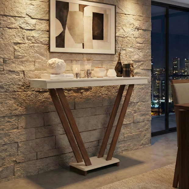 Mesa Aparador Sala Decorativo Pés em Madeira Supreme - Offwhite OffWhite