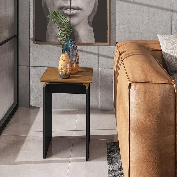 Mesa Apoio Alta Sala de Estar Lilibeth Naturale/Preto Fosco