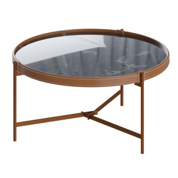 A Mesa Aqua centro Pequena vai levar muita modernidade para seu ambiente, além de complementar sua sala de estar, trazendo um toque clean. Tem seu tampo padrão em mármore “plotado” preto rajado em vidro, base metal na cor cobre.