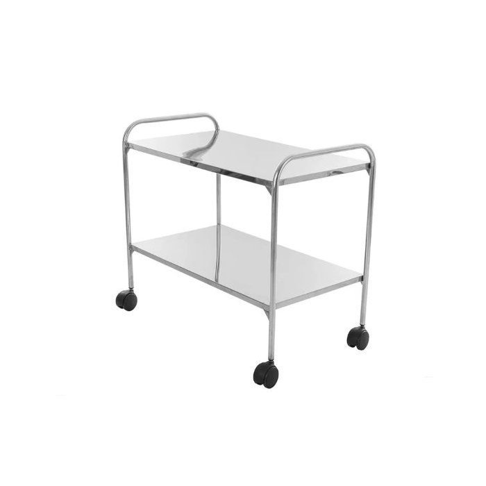 Características: Fabricada em aço Inox 430. Pés tubulares 3/4 com Rodizio de 2, tampo, prateleira. Espessura da chapa: 0,61 mm bitola 24#, Cubagem: 0,192 M³. Capacidade de carga estática é de 30kg por prateleira. Peso 7kg.