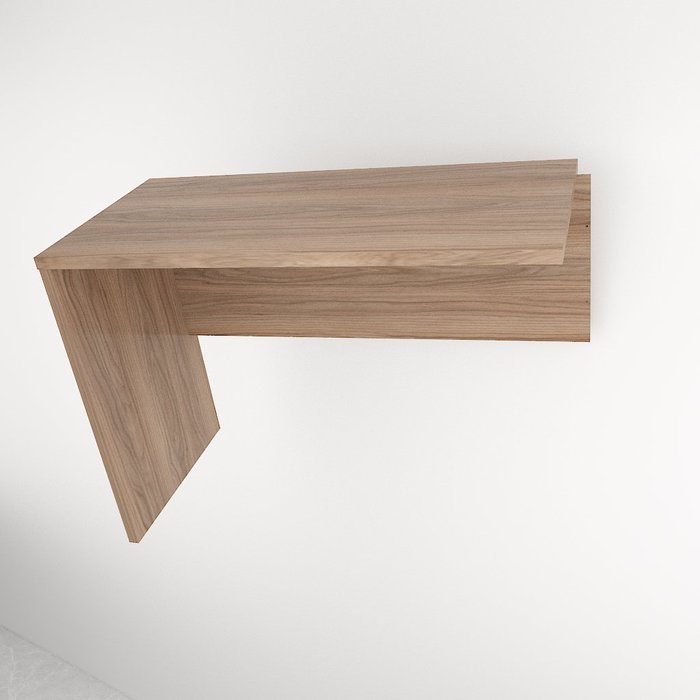 A estrutura da mesa é composta por uma base em MDP, e no outro lado será fixado através de duas chapas de união por baixo do tampo da mesa, conferindo estabilidade e resistência ao conjunto.