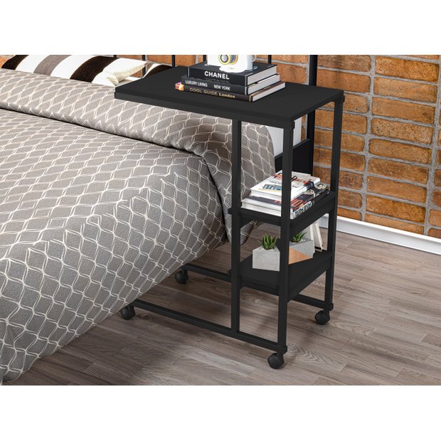 Mesa Auxiliar para Sofá Cama com Rodízios e Prateleiras Fit Preto