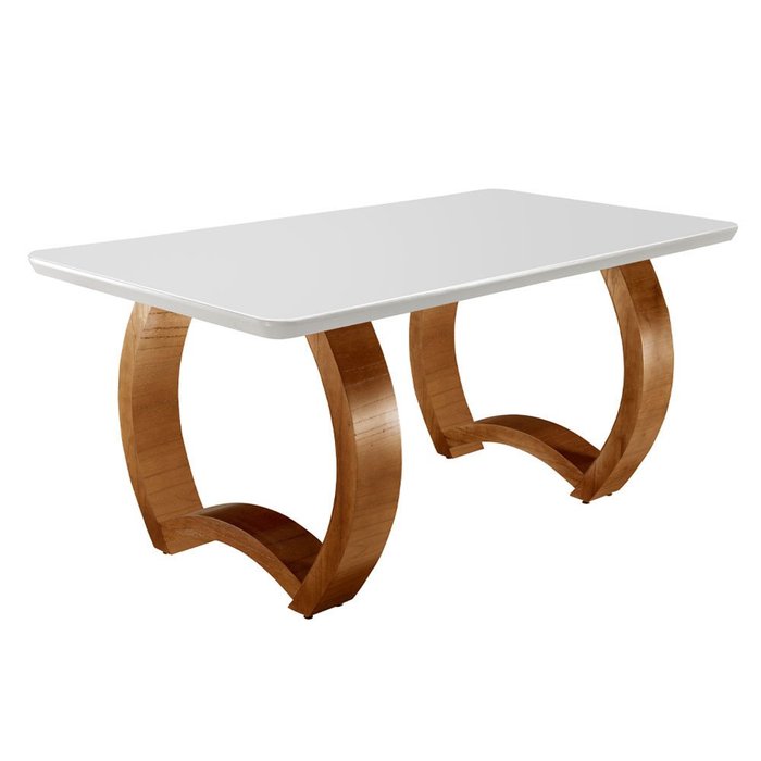 Mesa Bali 180 Canto Copo com Vidro Off White/Imbuia